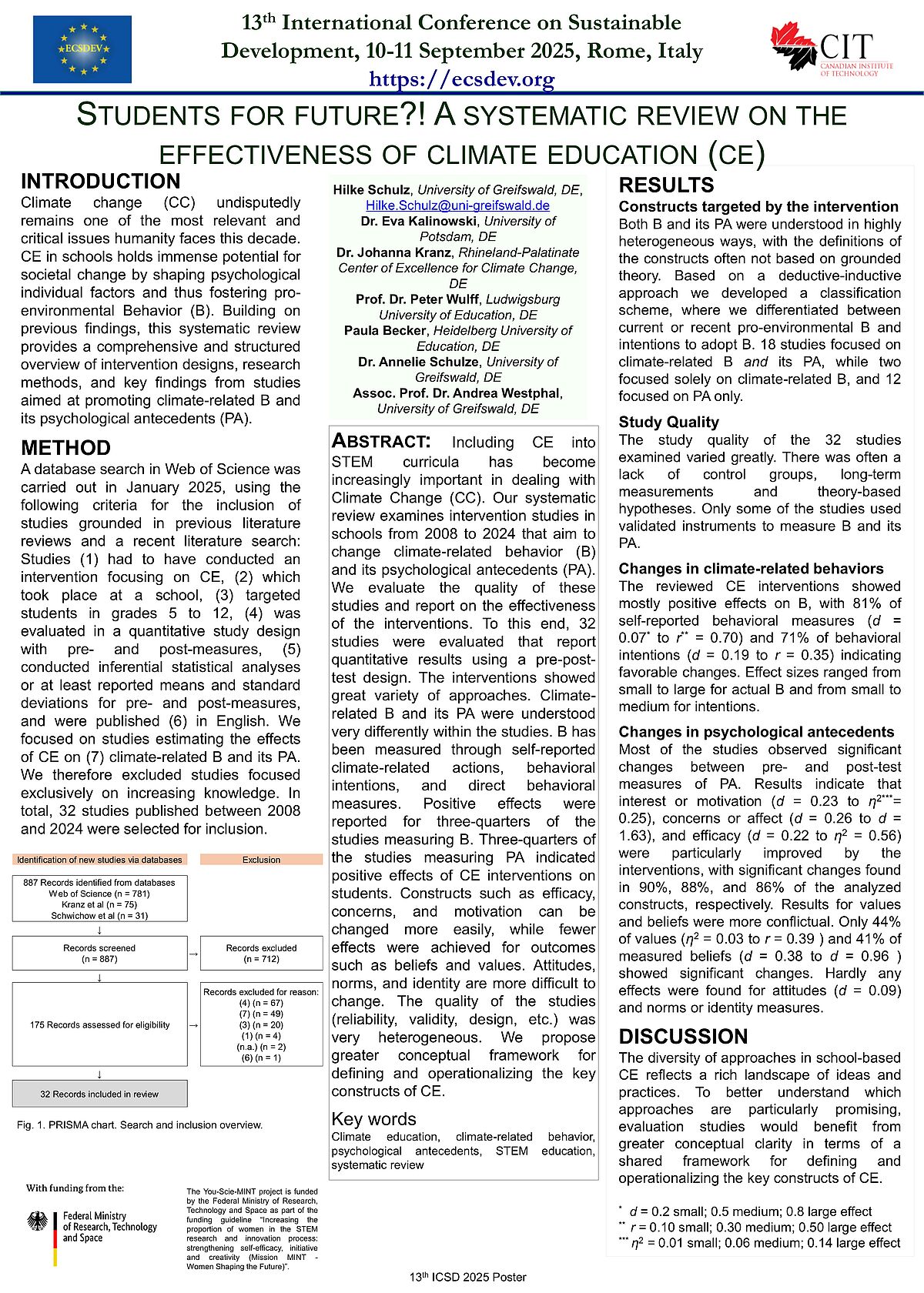 09/2025 | Students for Future?! A systematic review on the effectiveness of climate education | International Conference on Sustainable Development (ICSD) in Rom |
