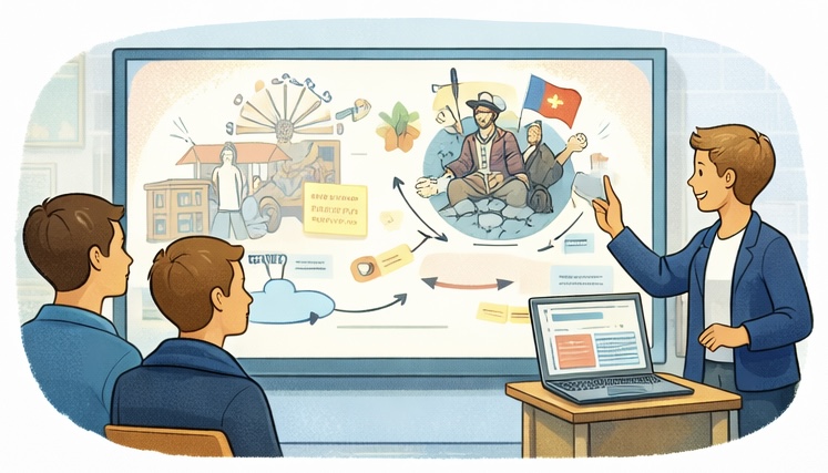 | Beispiel: Im Geschichtsunterricht präsentieren Schüler*innen ihre Ergebnisse zur Französischen Revolution mithilfe einer Prezi-Präsentation. |