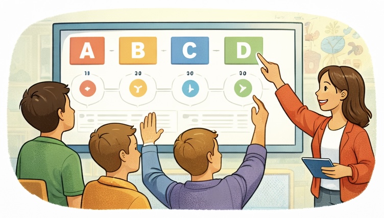 | Ablauf: Die Lehrkraft oder die Schüler*innen erstellen interaktive Materialien, beispielsweise ein Quiz oder eine Präsentation. Die Klasse bearbeitet die Aufgaben gemeinsam oder in Gruppen. Anschließend werden die Ergebnisse besprochen und wichtige Inhalte wiederholt. |